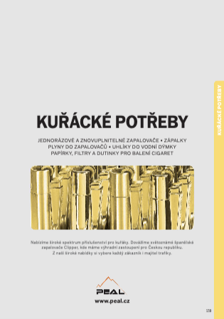JEDNORÁZOVÉ A ZNOVUPLNITELNÉ ZAPALOVAČE • ZÁPALKY • PLYNY DO ZAPALOVAČŮ • UHLÍKY DO VODNÍ DÝMKY • PAPÍRKY, FILTRY A DUTINKY PRO BALENÍ CIGARET