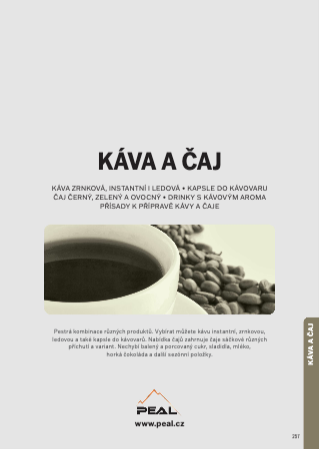 KÁVA ZRNKOVÁ, INSTANTNÍ I LEDOVÁ • KAPSLE DO KÁVOVARU• ČAJ ČERNÝ, ZELENÝ A OVOCNÝ• DRINKY S KÁVOVÝM AROMA • PŘÍSADY K PŘÍPRAVĚ KÁVY A ČAJE